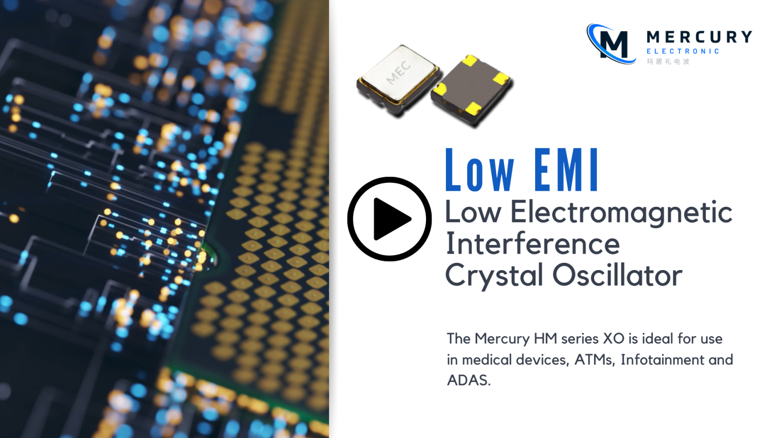 Mercury specializes in manufacturing Crystal Oscillators, Crystal Units, Crystal Filters, and Frequency Control Products, serving a wide range of industries, including automotive, consumer electronics, industrial, medical, aerospace, defense, and data communication.